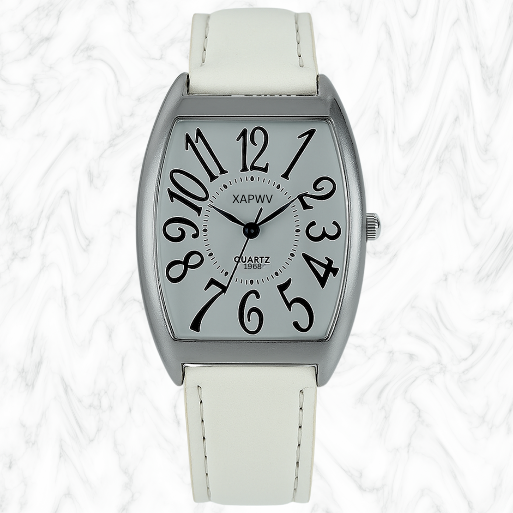 Hera’s Elegant Round Dial Quartz Watch is crafted with high-grade stainless steel for durability and a premium finish. The clasp is made of polished alloy for smooth closure, and the interior components are powered by a precision quartz movement. It's 100% nickel-free, hypoallergenic, and made to last.